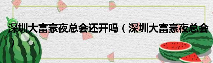 深圳大富豪夜總會還開嗎(深圳大富豪夜總會)