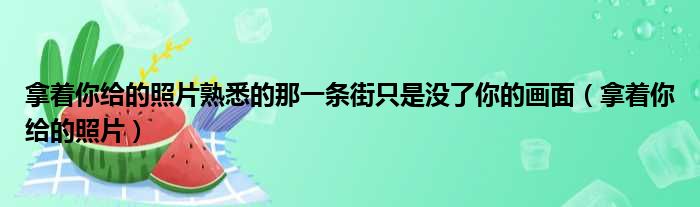 導讀 大家好,小霞來為大家解答以上的問題。拿著你給的照片熟悉的那一條街只是沒了你的畫面,拿著你給的照片這個很多人還不知道,現在讓我們一起來