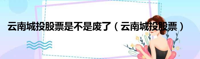 大家好,小霞來為大家解答以上的問題。云南城投股票是不是廢了,云南城投股票這個很多人還不知道,現在讓我們一起來看看吧!