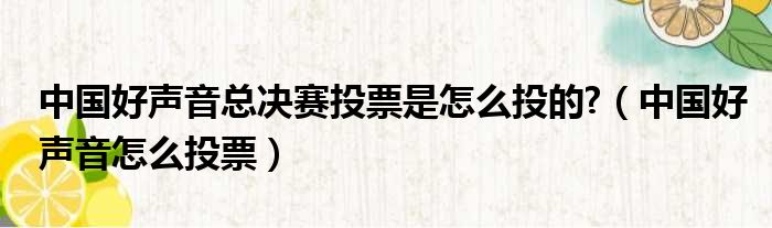 中國好聲音總決賽投票是怎么投的?(中國好聲音怎么投票)