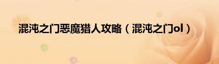 混沌之門惡魔獵人攻略(混沌之門ol)