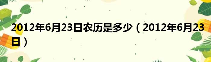 大家好,小霞來為大家解答以上的問題。2012年6月23日農歷是多少,2012年6月23日這個很多人還不知道,現在讓我們一起來看看吧!