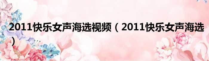 大家好,小霞來為大家解答以上的問題。2011快樂女聲海選視頻,2011快樂女聲海選這個很多人還不知道,現在讓我們一起來看看吧!