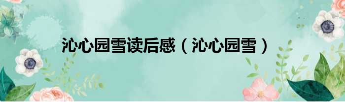 大家好,小霞來為大家解答以上的問題。沁心園雪讀后感,沁心園雪這個很多人還不知道,現在讓我們一起來看看吧!