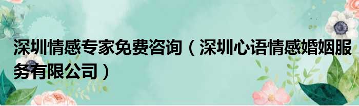 深圳情感專家免費咨詢(深圳心語情感婚姻服務有限公司)