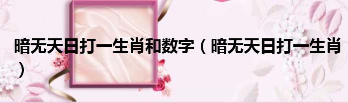 大家好,小霞來為大家解答以上的問題。暗無天日打一生肖和數字,暗無天日打一生肖這個很多人還不知道,現在讓我們一起來看看吧!