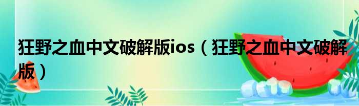 狂野之血中文破解版ios(狂野之血中文破解版)