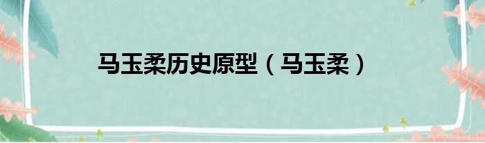 馬玉柔歷史原型(馬玉柔)