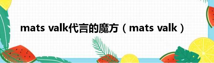大家好,小霞來為大家解答以上的問題。mats valk代言的魔方,mats valk這個很多人還不知道,現在讓我們一起來看看吧!