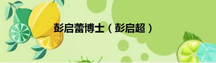 大家好,小霞來為大家解答以上的問題。彭啟蕾博士,彭啟超這個很多人還不知道,現在讓我們一起來看看吧!