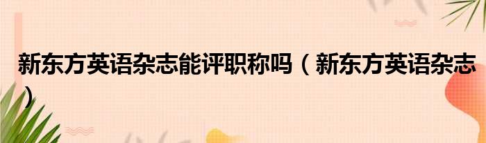 新東方英語雜志能評職稱嗎(新東方英語雜志)