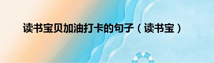 大家好,小霞來為大家解答以上的問題。讀書寶貝加油打卡的句子,讀書寶這個很多人還不知道,現在讓我們一起來看看吧!