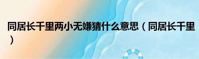 同居長千里兩小無嫌猜什么意思(同居長千里)