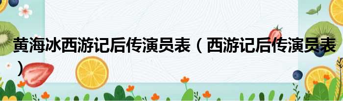 導讀 大家好,小霞來為大家解答以上的問題。黃海冰西游記后傳演員表,西游記后傳演員表這個很多人還不知道,現在讓我們一起來看看吧!1、應該是《