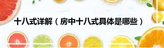 大家好,小霞來為大家解答以上的問題。十八式詳解,房中十八式具體是哪些這個很多人還不知道,現在讓我們一起來看看吧!