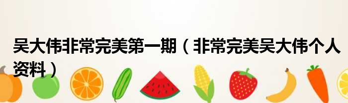 大家好,小霞來為大家解答以上的問題。吳大偉非常完美第一期,非常完美吳大偉個人資料這個很多人還不知道,現在讓我們一起來看看吧!