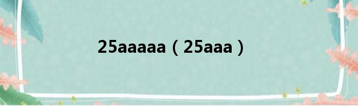 大家好,小霞來為大家解答以上的問題。25aaaaa,25aaa這個很多人還不知道,現在讓我們一起來看看吧!
