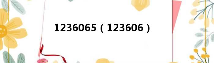 大家好,小霞來為大家解答以上的問題。1236065,123606這個很多人還不知道,現在讓我們一起來看看吧!