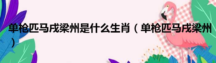 單槍匹馬戌梁州是什么生肖(單槍匹馬戌梁州)