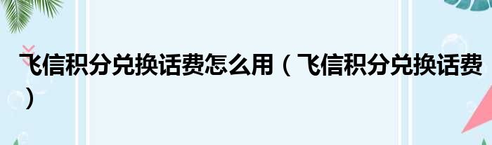 飛信積分兌換話費怎么用(飛信積分兌換話費)