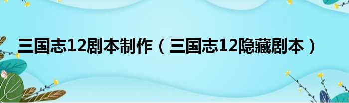 大家好,小霞來為大家解答以上的問題。三國志12劇本制作,三國志12隱藏劇本這個很多人還不知道,現在讓我們一起來看看吧!