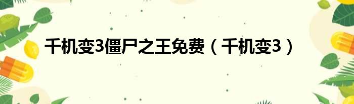 導讀 大家好,小霞來為大家解答以上的問題。千機變3僵尸之王免費,千機變3這個很多人還不知道,現在讓我們一起來看看吧!1、好像沒有聽說有計劃要
