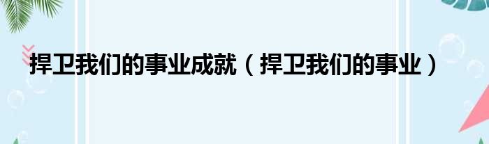 大家好,小霞來為大家解答以上的問題。捍衛我們的事業成就,捍衛我們的事業這個很多人還不知道,現在讓我們一起來看看吧!