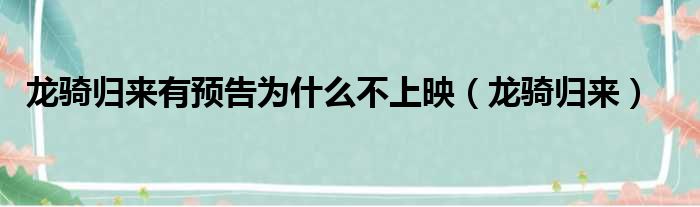 龍騎歸來有預告為什么不上映(龍騎歸來)