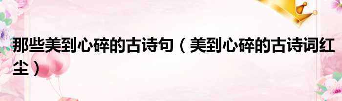 那些美到心碎的古詩句(美到心碎的古詩詞紅塵)