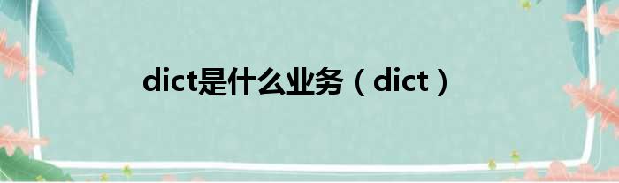 大家好,小霞來為大家解答以上的問題。dict是什么業務,dict這個很多人還不知道,現在讓我們一起來看看吧!