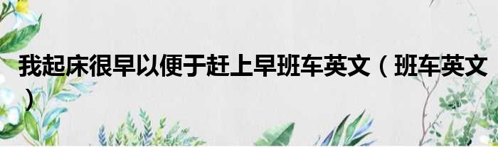 大家好,小霞來為大家解答以上的問題。我起床很早以便于趕上早班車英文,班車英文這個很多人還不知道,現在讓我們一起來看看吧!