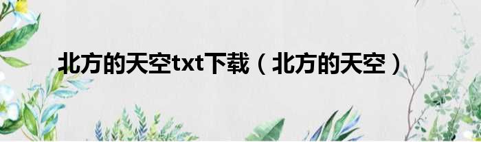 大家好,小霞來為大家解答以上的問題。北方的天空txt下載,北方的天空這個很多人還不知道,現在讓我們一起來看看吧!