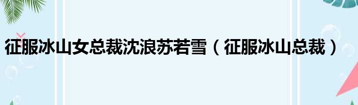 征服冰山女總裁沈浪蘇若雪(征服冰山總裁)