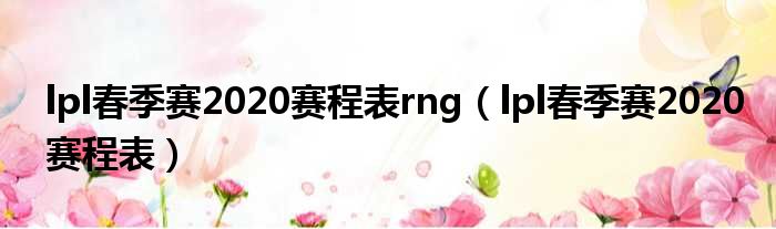 lpl春季賽2020賽程表rng(lpl春季賽2020賽程表)