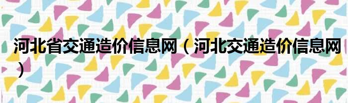 河北省交通造價信息網(河北交通造價信息網)