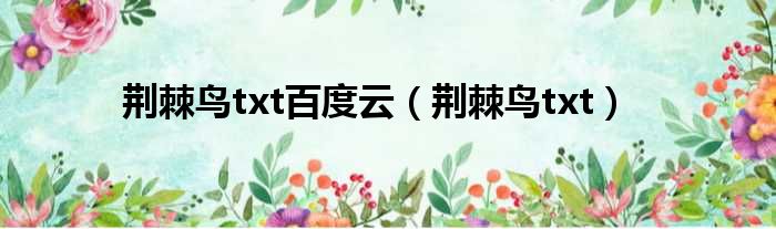 導讀 大家好,小霞來為大家解答以上的問題。荊棘鳥txt百度云,荊棘鳥txt這個很多人還不知道,現在讓我們一起來看看吧!1、真正的愛不是用言語可以