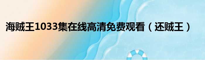 大家好,小霞來為大家解答以上的問題。海賊王1033集在線高清免費觀看,還賊王這個很多人還不知道,現在讓我們一起來看看吧!