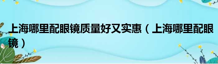 上海哪里配眼鏡質量好又實惠(上海哪里配眼鏡)