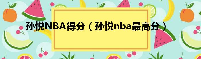 孫悅NBA得分(孫悅nba最高分)