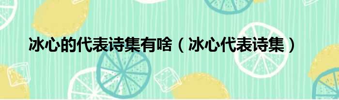 1、《繁星》(詩集)1923,商務《春水》(詩集)1923,新潮社《超人》(小說、散文集)1923、商務《寄小讀者》(散文集)1926,北新《往事》(小說、散文集)193o,開明《南歸》(散文集)1931,北新《姑姑》(小說集)1932,北新《冰心全集之一——冰心小說集》1933,北新《冰心全集之二——冰心詩集》1932,北新《冰心全集之三——冰心散文集》1932,北新《閑情》(詩、散文集)1922,北新《去國》(小說集)1933,北新《平綏沿線旅行記》(散文集)1935,平綏鐵路管理局《冬兒姑娘》(小說集)1935,北新《冰心著作集之一——冰心小說集》1943,開明《冰心著作集之二——冰心散文集》1943,開明《冰心著作集之三——冰心詩集》1943,開明《關于女人》(散文集)1943,天地《冰心小說散文選集》1954,人文《陶奇的暑期日記》(小說)1956,上海少兒《還鄉雜記》(散文集)1957,上海少兒《歸來以后》(散文集)1958,作家《我們把春天吵醒了》(散文集)1960,百花《小桔燈》(小說、散文、詩歌合集)1960,作家《櫻花贊》(散文集)1962,百花《拾穗小札》(散文集)1964.作家《晚晴集》(散文、小說合集)1980,百花《三寄小讀者》(散文集)1981,少兒《記事珠》(創作談)1982,人文《冰心論創作》1982.上海文藝《冰心作品選》1982,少兒《冰心散文選》1983,人文《冰心選集(1—2)1983,四川人民(未出齊)《冰心文集(1一3)1983,上海文藝(未出齊)《冰心全集》(1-8)1994年,海峽文藝《繁星》(詩集)1923,商務《春水》(詩集)1923,新潮社《超人》(小說、散文集)1923、商務《寄小讀者》(散文集)1926,北新《往事》(小說、散文集)193o,開明《南歸》(散文集)1931,北新《姑姑》(小說集)1932,北新《冰心全集之一——冰心小說集》1933,北新《冰心全集之二——冰心詩集》1932,北新《冰心全集之三——冰心散文集》1932,北新《閑情》(詩、散文集)1922,北新《去國》(小說集)1933,北新《平綏沿線旅行記》(散文集)1935,平綏鐵路管理局《冬兒姑娘》(小說集)1935,北新《冰心著作集之一——冰心小說集》1943,開明《冰心著作集之二——冰心散文集》1943,開明《冰心著作集之三——冰心詩集》1943,開明《關于女人》(散文集)1943,天地《冰心小說散文選集》1954,人文《陶奇的暑期日記》(小說)1956,上海少兒《還鄉雜記》(散文集)1957,上海少兒《歸來以后》(散文集)1958,作家《我們把春天吵醒了》(散文集)1960,百花《小桔燈》(小說、散文、詩歌合集)1960,作家《櫻花贊》(散文集)1962,百花《拾穗小札》(散文集)1964.作家《晚晴集》(散文、小說合集)1980,百花《三寄小讀者》(散文集)1981,少兒《記事珠》(創作談)1982,人文《冰心論創作》1982.上海文藝《冰心作品選》1982,少兒《冰心散文選》1983,人文《冰心選集(1—2)1983,四川人民(未出齊)《冰心文集(1一3)1983,上海文藝(未出齊)《冰心全集》(1-8)1994年,海峽文藝冰心原名謝婉瑩,是中國著名的詩人、現代作家、翻譯家、兒童文學作家、社會活動家、散文家,冰心的詩集有《繁星》、《春水》、《閑情》。