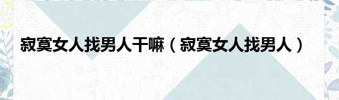 寂寞女人找男人干嘛(寂寞女人找男人)