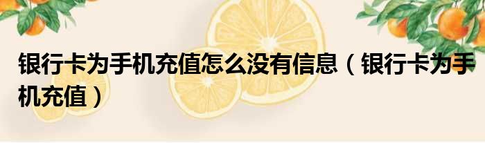 銀行卡為手機充值怎么沒有信息(銀行卡為手機充值)