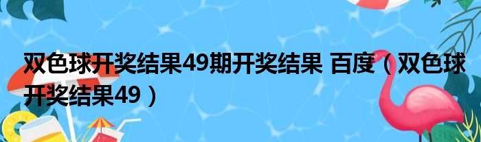 雙色球開獎結果49期開獎結果 百度(雙色球開獎結果49)