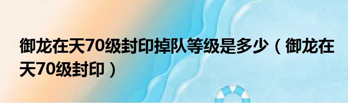 御龍在天70級封印掉隊等級是多少(御龍在天70級封印)