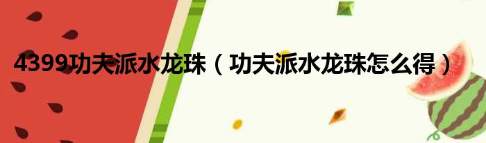 4399功夫派水龍珠(功夫派水龍珠怎么得)