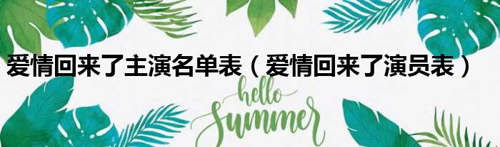 導讀 大家好,小霞來為大家解答以上的問題。愛情回來了主演名單表,愛情回來了演員表這個很多人還不知道,現在讓我們一起來看看吧!1、《愛情回來