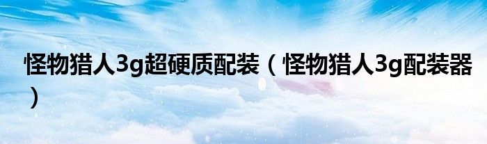 大家好,小霞來為大家解答以上的問題。怪物獵人3g超硬質配裝,怪物獵人3g配裝器這個很多人還不知道,現在讓我們一起來看看吧!