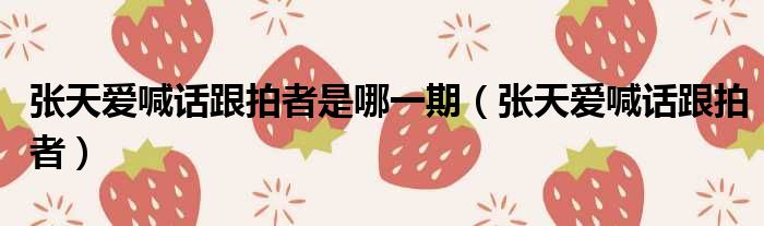 大家好,小霞來為大家解答以上的問題。張天愛喊話跟拍者是哪一期,張天愛喊話跟拍者這個很多人還不知道,現在讓我們一起來看看吧!