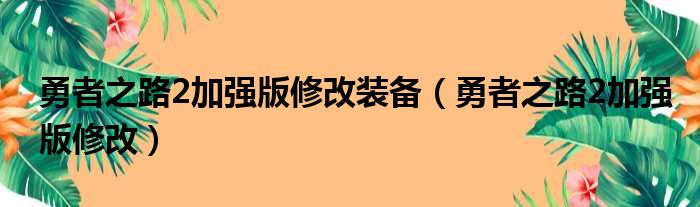勇者之路2加強版修改裝備(勇者之路2加強版修改)
