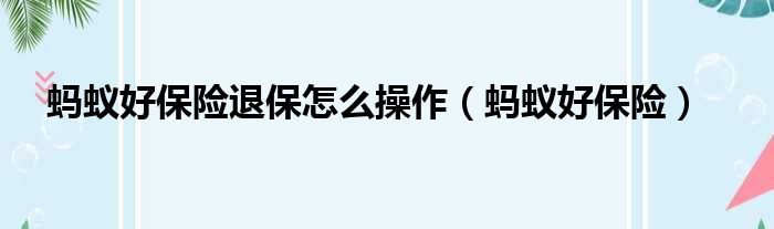 螞蟻好保險退保怎么操作(螞蟻好保險)